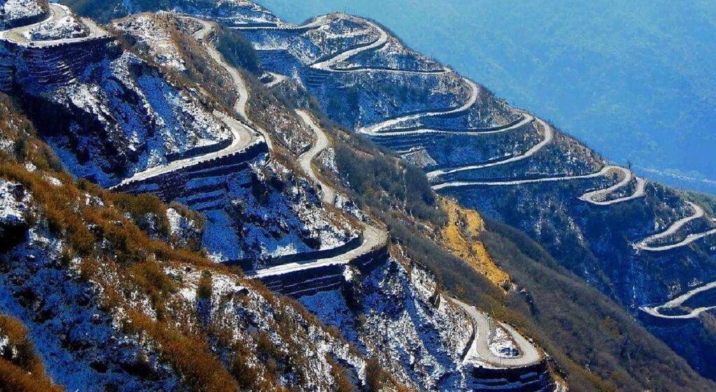 The quirky symmetry of 32 loops of Zuluk, which are part of the ancient 93 hairpin bends through which priceless silk used to be traded from Lhasa to modern day Tamralipto (Tomluk of West Bengal). This ancient trade route once connected Tibet with the ports of Bengal, carrying precious silk, spices, and cultural exchanges across the mighty Himalayas. Today, these winding roads serve adventure seekers and nature enthusiasts who come to witness one of the most spectacular mountain drives in the world.